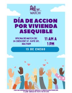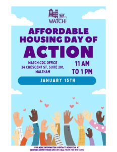 RSVP at: https://tinyurl.com/HousingClinicDropin0125 or text/call WATCH at 781-570-4357